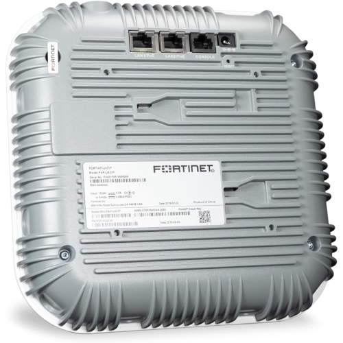 FortiAP-U431F Indoor Wireless Universal AP - Tri radio (2x 802.11 a/b/g/n/ac/ax, 4x4 MIMO and 1x 802.11 a/b/g/n/ac Wave 2, 2x2 MU-MIMO), internal antennas, 1x 100/1000/2500 Base-T RJ45, 1x 10/100/1000 Base-T RJ45, BT/BLE, 1x Type A USB, 1x RS-232 RJ45 Serial Port. Ceiling/wall mount kit included.For power order: 802.3at PoE injector GPI-130. Optional DC power adaptor SKU SP-FAP43F-PA-X-5. Region Code E