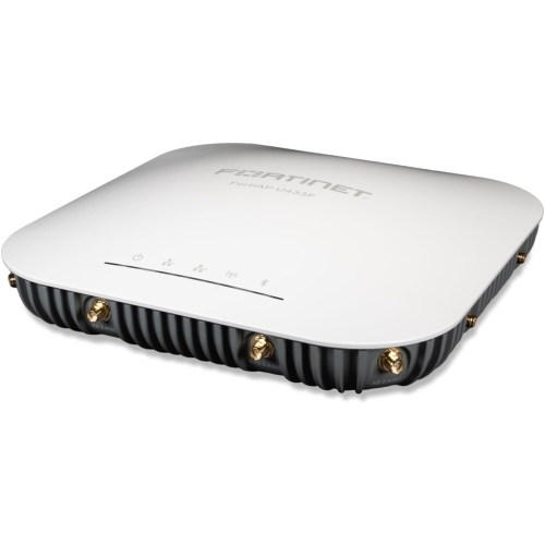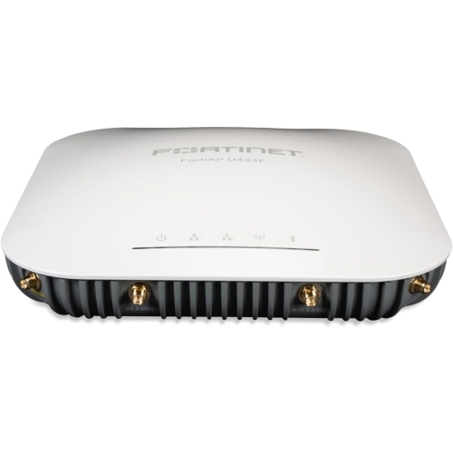 FortiAP-U433F Indoor Wireless Universal AP - Tri radio (2x 802.11 a/b/g/n/ac/ax, 4x4 MIMO and 1x 802.11 a/b/g/n/ac Wave 2, 2x2 MU-MIMO), external antennas included, 1x 100/1000/2500 Base-T RJ45, 1x 10/100/1000 Base-T RJ45, BT/BLE, 1x Type A USB, 1x RS-232 RJ45 Serial Port. Ceiling/wall mount kit included.For power order: 802.3at PoE injector GPI-130. Optional DC power adaptor SKU SP-FAP43F-PA-X-5. Region Code E