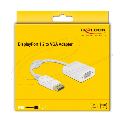 DELOCK Adapter DisplayPort 1.2 Stecker zu VGA Buchse weiß 61007