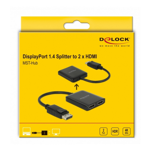 DELOCK DisplayPort 1.4 Splitter 1 x DisplayPort zu 2 x HDMI 87769