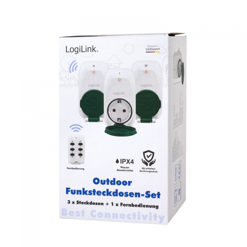 PRIZE LOGILINK x 3 , set cu telecomanda, raza 30m, pentru exterior, Schuko x 3 230 V/16 A, 50 Hz, max. 3600 W, IPX4, alb/verde "EC0008" (include TV 0.18lei) EC0008