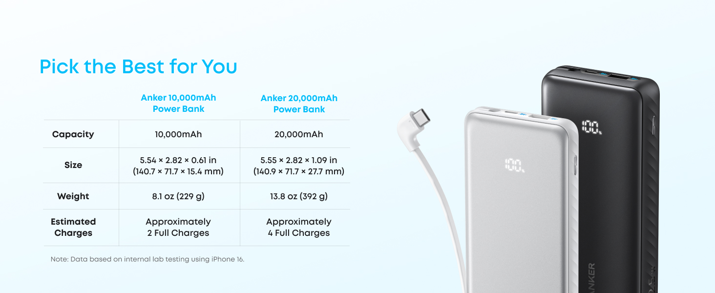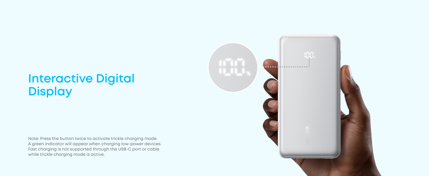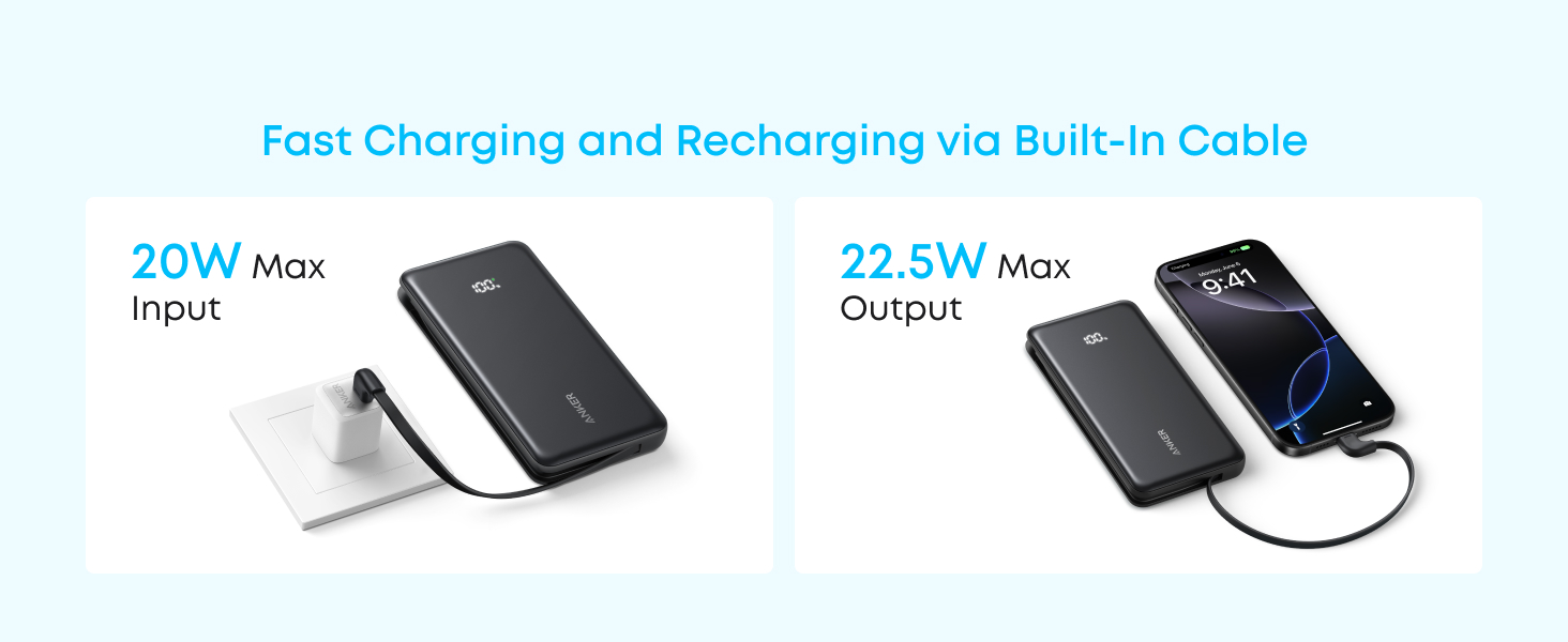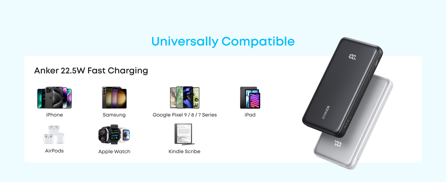 Obtineti o baterie externa cu incarcare rapida, cu o putere de iesire de 22,5 W prin portul USB-C, si bucurati-va de confortul incarcarii telefonului de pana la 2 ori.