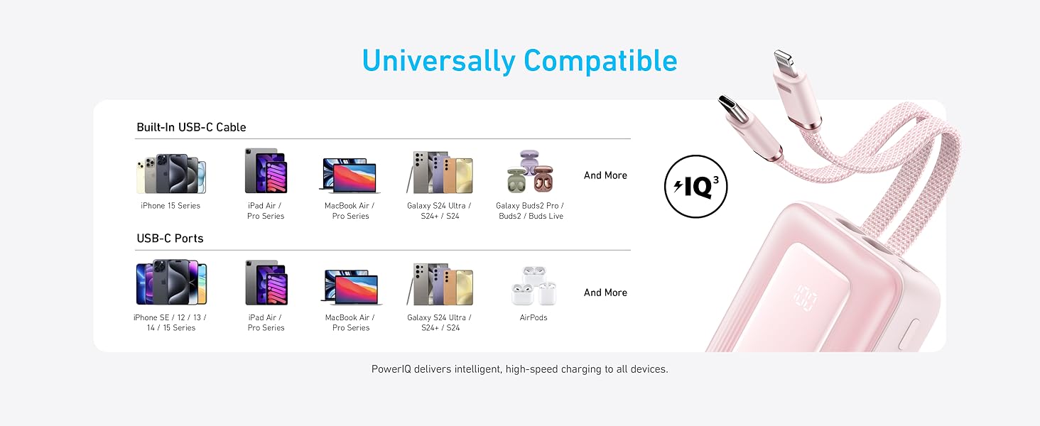 Baterie externa Anker Zolo Powerbank 20.000mAh 30W, cabluri USB-C Lightning incorporate