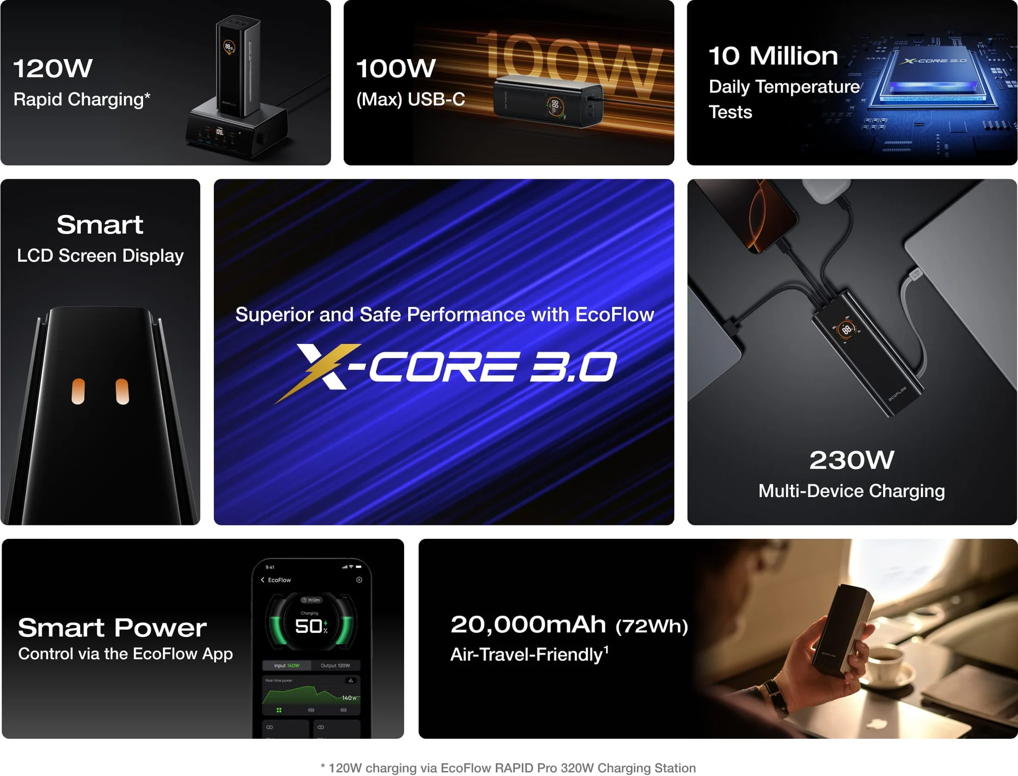 20.000 mAh (72 Wh) Potrivit pentru calatoriile cu avionul.¹