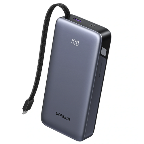 POWER BANK Ugreen "PB536", 20000mAh, 45W PD3.0 , 1 x USB, 1 x USB Type-C, 1 x USB Type-C cablu integrat, display, gri, "55988B"