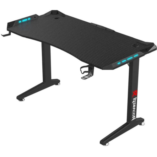Birou gaming Redragon GD-3101BK negru iluminare RGB, structura din otel, biroul este iluminat RGB, suprafata lucru tip carbon, dimensiune suprafata birou: 140x60cm, suport pahar, suport casti, greutate maxima admisa: 60 kg