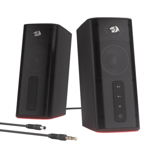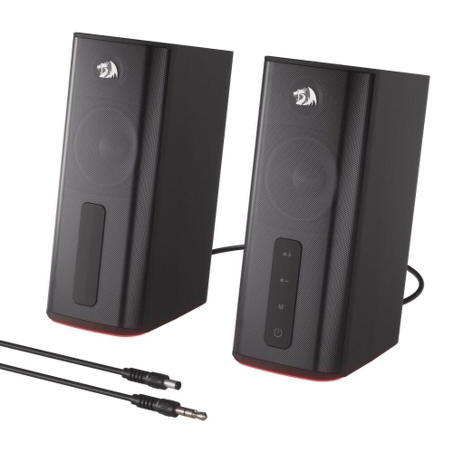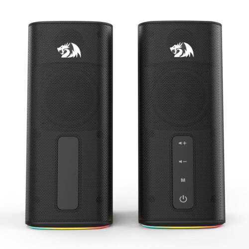 Boxe Bluetooth Redragon Connie negre iluminare RGB, putere: 20W RMS (10W x 2), dimensiune difuzor: 2.5”, frecventa: 150Hz~20KHz, ≥60db, conexiuni input: 1x jack 3.5mm TRS, Bluetooth, dimensiuni: 205x108x85mm, greutate:1.6kg
