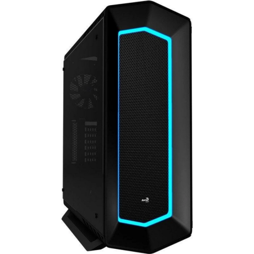Caracasa Aerocool Project7 C1 neagra, SPCC Steel ATX Mid Tower, fara sursa (tip ATX, montata jos), interior vopsit negru, 2x3.5” (intern), 4x2.5” (intern), fata – 3x 120mm / 2x 140mm fans (optional), spate – 1x 120mm fan (inclus) / 1x 140mm fan (optional), tavan – 2x 120mm fans (optional), design premium cu panou frontal cu banda LED RGB cu diverse efecte de iluminare si panou latereal din sticla securizata, inlcude fan controller (se pot conecta maxim 5 ventilatoare), 2x USB 3.0, 2x USB 2.0, HD Audio, card reader SD, ATX / microATX / Mini-ITX, sloturi expansiune: x7, inaltime maxima cooler procesor: 165mm, lungime maxima placa video: 375mm (cu ventilator frontal montat) / 400mm (fara ventilator frontal montat), suport radiatoare water cooling: fata – 1x 240/280/360mm, spate – 1x 120mm, tavan – 1x 240mm, dimensiuni (HxWxD): 550x244.6x446.4mm, greutate: 6.8kg