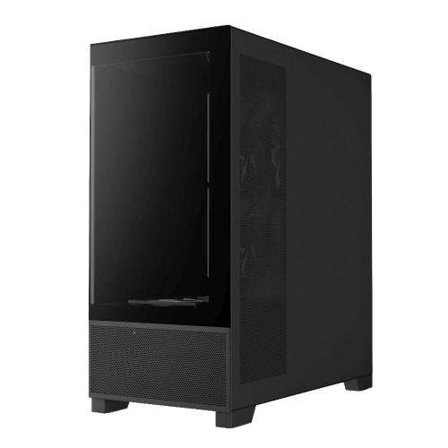 Carcasa Gamdias Aura GC12 aRGB neagra, SPCC & ABS & Tempered glass, Mid Tower Case, interior vopsit negru, 1 x 3.5" si 2x 2.5”, spate – 1x 120mm aRGB LED Fans (inclus), tavan – 3x 120mm / 2x 140mm fans (optional), lateral – 2x 120mm aRGB LED Fans (inclus), podea – 3x 120mm aRGB LED Fans (inclus), 1x USB Type-C, 2x USB 2.0, HD Audio, ATX/Micro-ATX/Mini-ITX, design premium panoramic din sticla securizata, sloturi expansiune: x7, inaltime maxima cooler procesor: 160mm, lungime maxima placa video: 410mm, lungime maxima sursa: 180mm, suport radiatoare water cooling: tavan – 1x 280/360mm, lateral – 1x 240mm, spate – 1x 120mm, dimensiuni (LxWxH): 415x220x470mm
