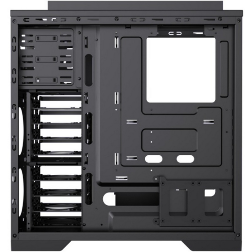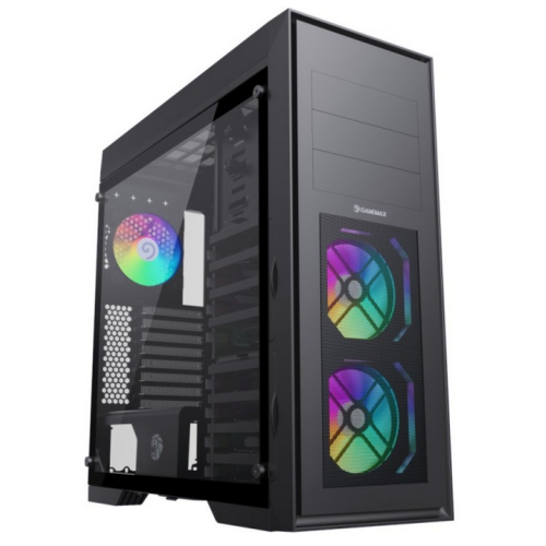 carcasa Full Tower, sasiu din otel SPCC 0.8mm, finisaj de tip brushed pe panoul frontal cu mesh metalic, culoare neagra, panou lateral stanga din sticla securizata, compatibila cu Mini ITX/ Micro ATX/ ATX/EATX (280*305), 8 sloturi de expansiune, Bay-uri externe 3 x 5.25, stocare interna: 8x 3.5"/2.5" si 2x 2.5" modulare, montare sursa in podea si tunel pentru sursa demontabil, filtre de praf pe top, front si podea, suporta placi video cu lungimea pana la 420mm cu cusca de HDD de sus scoasa si 280 mm cu cusca montata, suport coolere cu inaltimea pana la 170 mm, VGA holder inclus, front panel : 2x USB3.0 , 2x USB2.0, 1x USB3.2 Type C Gen2, HD Audio - 1x 3.5 audio jack + 1x 3.5 microfon jack, 2x fan controllere, power si reset, include 1 hub ARGB-PWM si 3 ventilatoare ARGB de 120mm, suporta montarea de radiatoare pentru racire cu apa pana la 360 mm, dimensiuni: 512x527x212 mm.