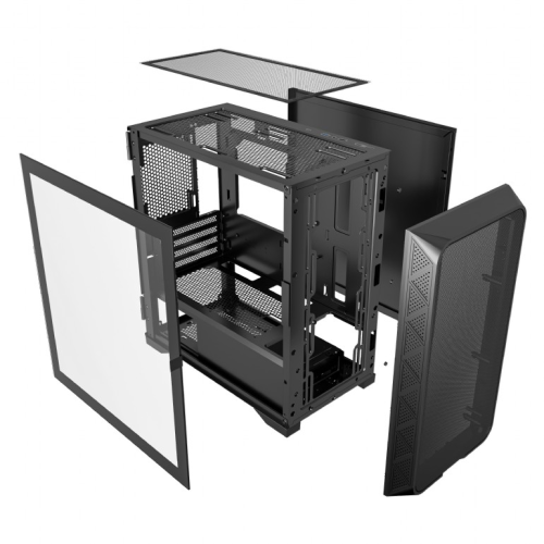 Recomandat GamingDaTip carcasaMini TowerSursa alimentareFara sursaPozitionare sursaJosGeam lateralDa, tempered glassInaltime cooler CPU155 mm (Max)Lungime video GPU320 mm (Max)Suport radiatorFata - 1 x 120/140/240/280mmIluminare LEDNuDimensiuni390 x 200 x 391 mmGreutate3.65 kgCuloareNegru -