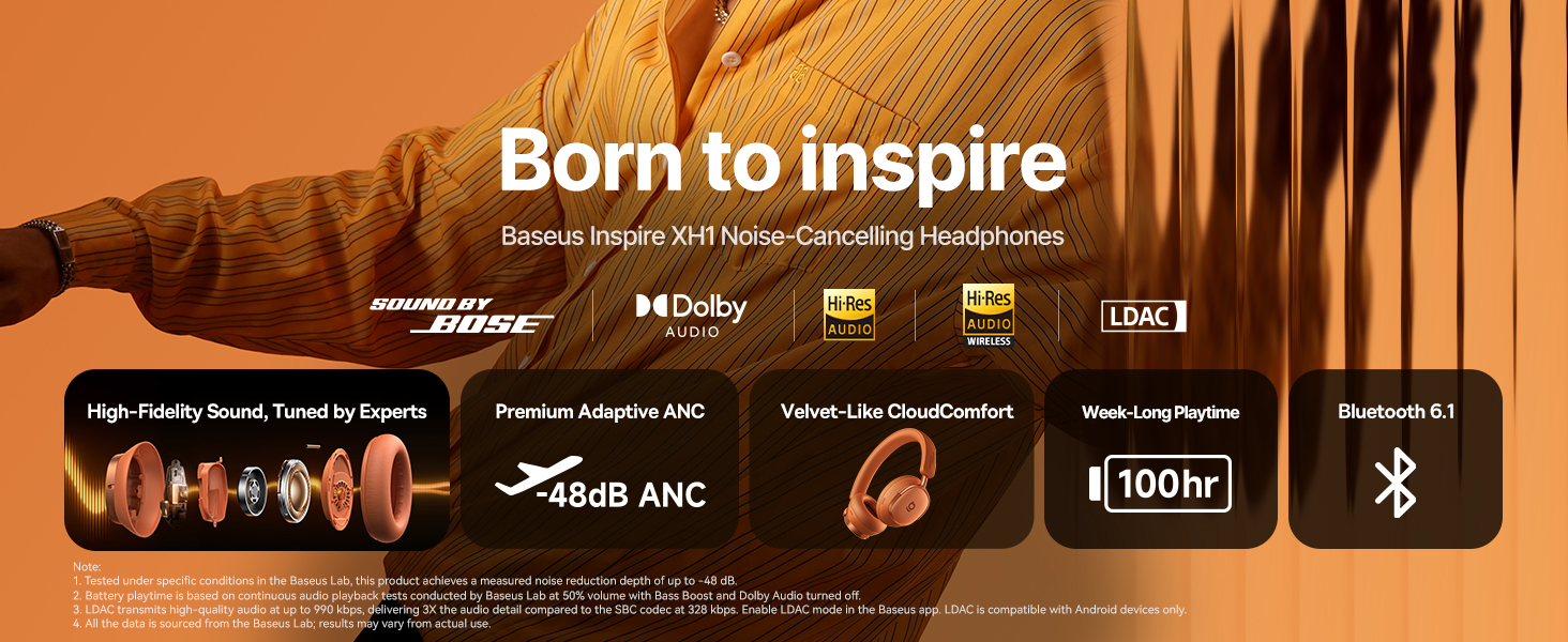 Bucurati-va de o experienta audio exceptionala cu cele mai bune casti Baseus de pana acum - dotate cu Sound by Bose pentru un sunet premium caracteristic, Dolby Spatial Audio pentru un sunet captivant la 360°, certificare Hi-Res pentru o claritate uimitoare si LDAC pentru detalii audio de 3 ori mai mari decat Bluetooth standard.