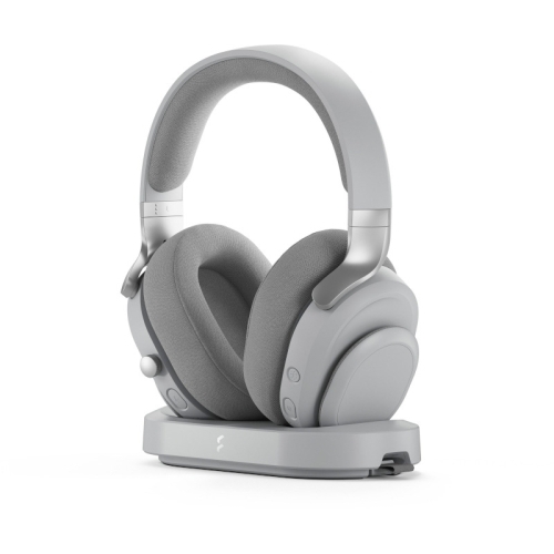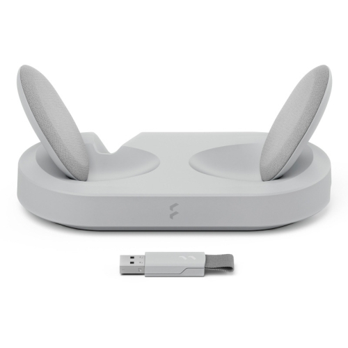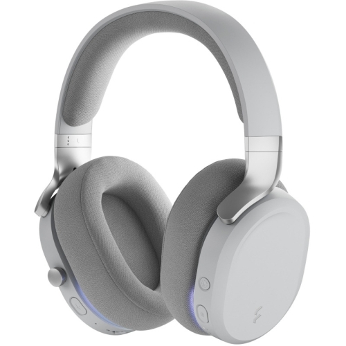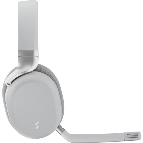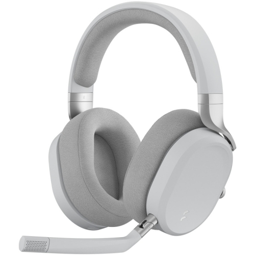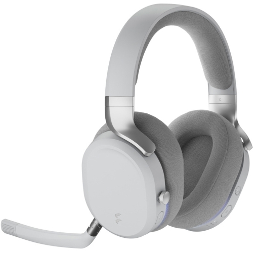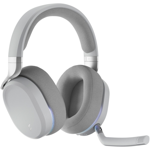 Casti audio wireless cu iluminare RGB (6 LED-uri adresabile individual per cupa), design scandinav, material moale, linii sculptate și accente din aliaj metalic rezistent la zgarieturi, gri deschis, statie de andocare asistata de magneti, wireless 2,4 GHz dongle USB-A, bluetooth 5.3, prin cablu USB-C to USB-A, latenta ultra-scăzută de 24 biți/96 kHz, THD la 1 kHz 40 de ore RGB dezactivat, >24 de ore RGB activat, distanta de functionare pana la 40m (fara obstacole), timp de incarcare 0-100% (stație de incarcare/cablu USB)