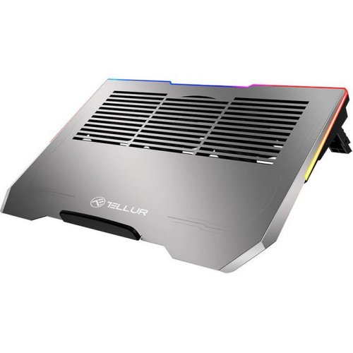 Cooler laptop Tellur Shade, pentru laptpori cu dimensiunea de 17", 3 ventilatoare, conexiune USB-A sau USB-C plug and play, iluminare RGB LED, gri
