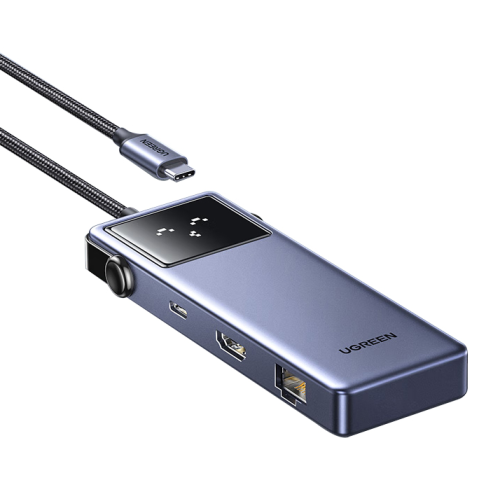 DOCKING Station Ugreen, "CM511" conectare PC USB Type-C, USB 3.0 x 3;HDMI x 1/4K/60Hz;RJ-45 Gigabit x 1;USB Type C x 1 PD 100W, aluminiu, gri "45155"
