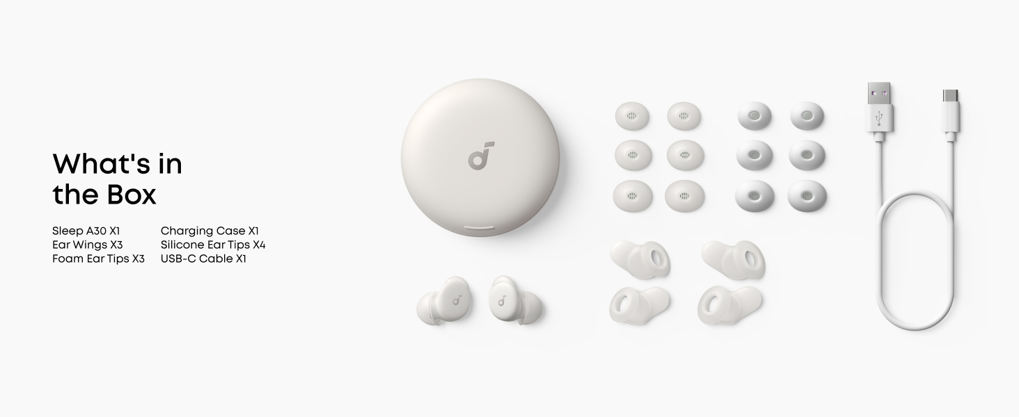 TipTWS - True Wireless StereoVersiune BluetoothBluetooth 5.3Port incarcareUSB-CCarcasa cu acumulatorDaDurata convorbirepana la 9 oreCompatibilitateiOS, AndroidGreutate53 gCuloareAlbAccesorii incluseAnker Soundcore Sleep A30 Wireless Bluetooth Earbuds