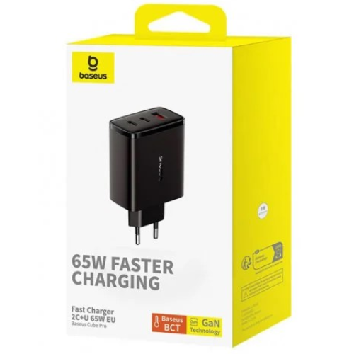 Incarcator retea Baseus Cube Pro, 1x USB, 2x USB-C, 65W, Black