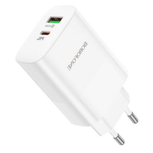 INCARCATOR retea Borofone "BN10" , Quick Charge 65W, 1 x USB, 1 x USB Type-C, alb "6974443388190" (timbru verde 0.18 lei) 6974443388190
