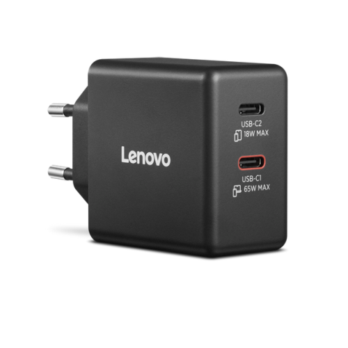 Incarcator retea Lenovo Dual GaN, 2 x USB-C, 65 W, Black