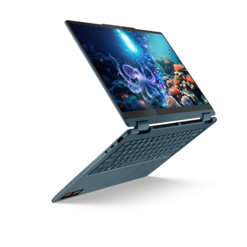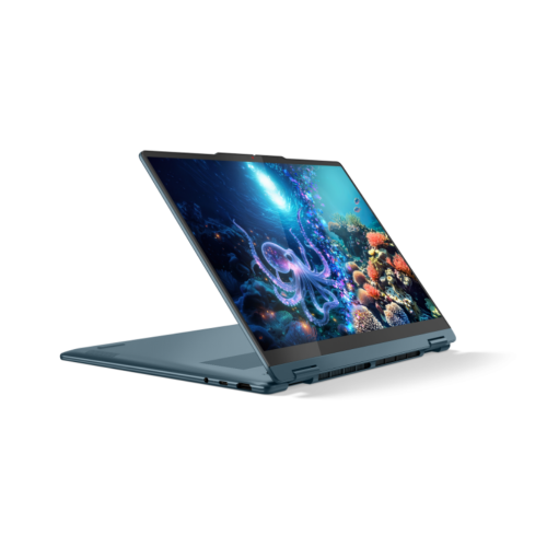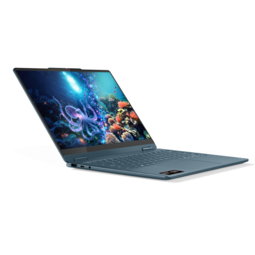 Laptop Lenovo Yoga 7 2-in-1 14AKP10, 14" 2.8K WQXGA+ (2880x1800) OLED 1100nits (peak) / 500nits (typical) Glossy / Anti-fingerprint, 100% DCI-P3, 120Hz, Dolby Vision®, TÜV Low Blue Light, DisplayHDR™ True Black 1000, Glass, Touch, AMD Ryzen™ AI 7 350 (8C / 16T, 2.0 / 5.0GHz, 8MB L2 / 16MB L3), video Integrated AMD Radeon™ 860M Graphics, RAM 24GB Soldered LPDDR5x-7500; Memory soldered to systemboard, no slots, dual-channel; 24GB soldered memory, not upgradable, SSD 1TB SSD M.2 2242 PCIe® 4.0x4 NVMe®, no ODD, microSD Card Reader, 4 stereo speakers, 2W x2 (woofers), 2W x2 (tweeters), optimized with Dolby Atmos®, Smart Amplifier (AMP), 5.0MP + IR with Privacy Shutter, No Onboard Ethernet, WLAN Wi-Fi® 7, 802.11be 2x2, Bluetooth 5.4, Non-WWAN, No Fingerprint Reader, Porturi: 1x USB-A (USB 5Gbps / USB 3.2 Gen 1), Always On; 1x USB-C® (USB 10Gbps / USB 3.2 Gen 2), with USB PD 3.1 and DisplayPort™ 2.1 UHBR10; 1x USB-C® (USB 10Gbps / USB 3.2 Gen 2), with USB PD 3.1 and DisplayPort™ 1.4a; 1x HDMI® 2.1, up to 4K/60Hz; 1x Headphone / microphone combo jack (3.5mm); 1x microSD card reader, 65W USB-C® Slim (2-pin, Wall-mount), Baterie Integrated 70Wh, Backlit, English, Tidal Teal, Greutate 1.38 kg, Dimensiuni 317 x 228 x 15.45 mm, 2-year, Courier or Carry-in; 3Y Premium Care with Onsite upgrade from 2Y Depot/CCI ( CPN), Accesorii None, Windows® 11 Home, Romanian / English