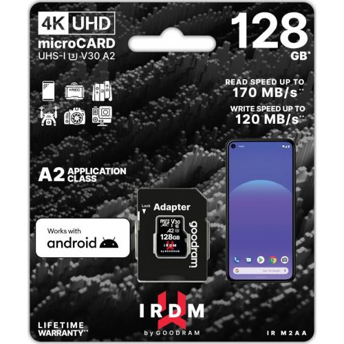 Memory Card MicroSDXC Goodram IRDM 128GB, Class 10, UHS-I U3 + Adaptor SD
