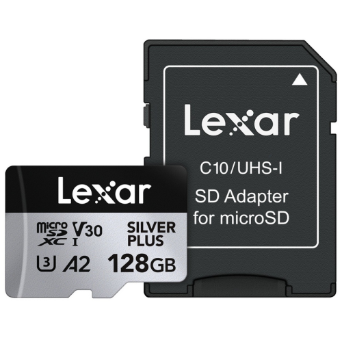 Memory Card microSDXC Lexar Professional Silver Plus 128GB, UHS-I U3, V30, A2 + Adaptor SD