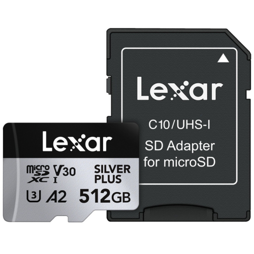 Memory Card microSDXC Lexar Professional Silver Plus 512GB, UHS-I U3, V30, A2 + Adaptor SD