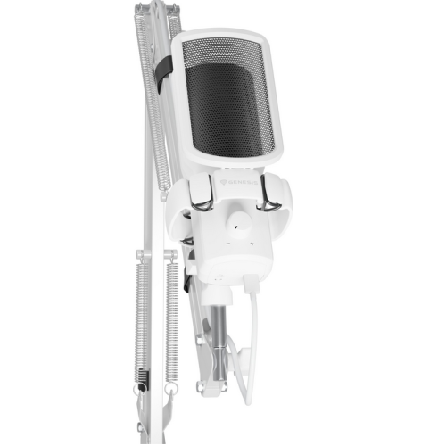 Brat cu microfon Genesis Radium 251, tip Condenser, model cardioid, suport fix, conectivitate USB-C, raspuns in frecventa 50 - 16.000 Hz, sensibilitate 40 dB, lungime cablu 200 cm, alb