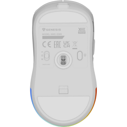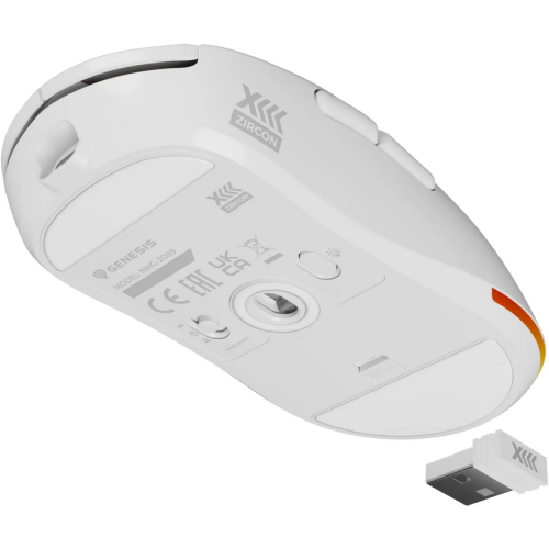 Mouse gaming wireless Gensesis Zircon XIII, senzor optic Pixart PAW3395, interfata USB, rezolutie maxima 26000 DPI, numar butoane 7, switch mecanic Huano Silent, Kailh 4.0, Kailh 8.0, iluminare RGB, alb