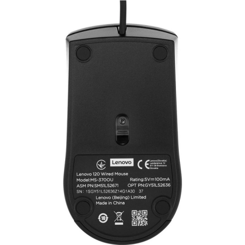 Mouse Optic Lenovo 120 Wired Mouse, USB, Black
