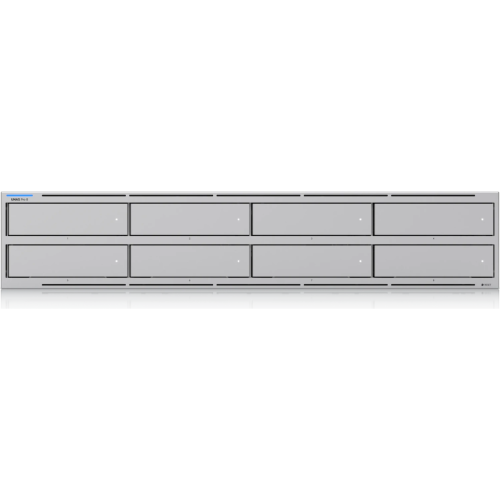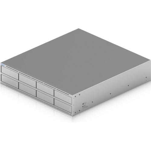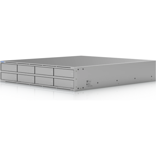 Ubiquiti UNAS-Pro-8-EU 2U rack-mount NAS with (8) 2.5/3.5" HDD bays and (2) M.2 NVMe SSD cache slots, delivering faster access, lower latency, and high-availability 10 Gbps networking for large-scale file storage and sharing