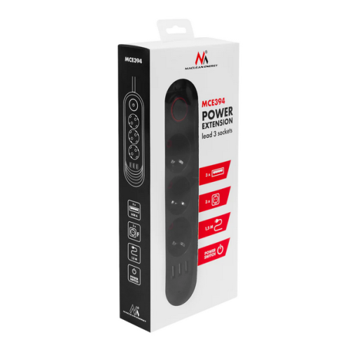 Prelungitor Maclean MCE394 B, 3 x Schuko, 3 x USB-A, 1.5 m, Black