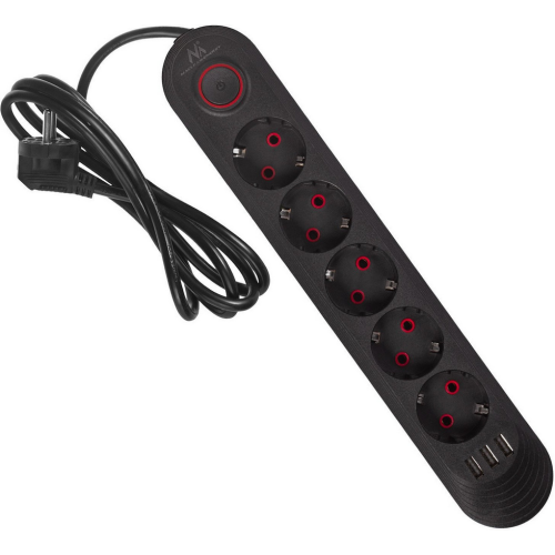 Prelungitor Maclean MCE395 B, 5 x Socket, 3 x USB, 1.5 m, Black