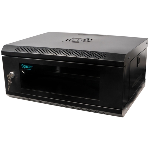 CABINET 19" SPACER 4U 500x400mm, fixare pe perete, Flatpack (dezasamblat), Grey, usa sticla cu blocare, panouri detasabile, otel 1mm, sarcina maxima 25Kg, contine un raft, "SPCW-4U-400-GR-02" SPCW-4U-400-GR-02
