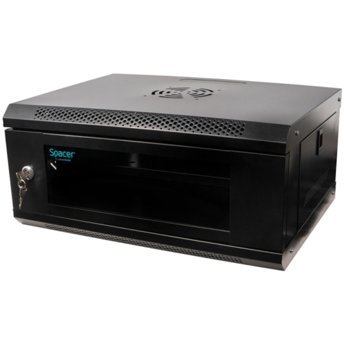 CABINET 19" SPACER 4U 500x450mm, fixare pe perete, Flatpack (dezasamblat), Grey, usa sticla cu blocare, panouri detasabile, otel 1mm, sarcina maxima 25Kg, contine un raft, "SPCW-4U-450-GR-02" SPCW-4U-450-GR-02