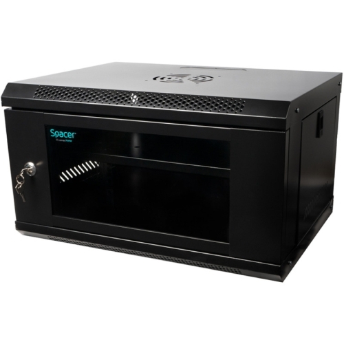 CABINET 19" SPACER 6U 500x400mm, fixare pe perete, Flatpack (dezasamblat), Grey, usa sticla cu blocare, panouri detasabile, otel 1mm, sarcina maxima 25Kg, contine un raft, "SPCW-6U-400-GR-02" SPCW-6U-400-GR-02