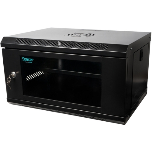 CABINET 19" SPACER 6U 500x450mm, fixare pe perete, Flatpack (dezasamblat), Grey, usa sticla cu blocare, panouri detasabile, otel 1mm, sarcina maxima 25Kg, contine un raft, "SPCW-6U-450-GR-02" SPCW-6U-450-GR-02