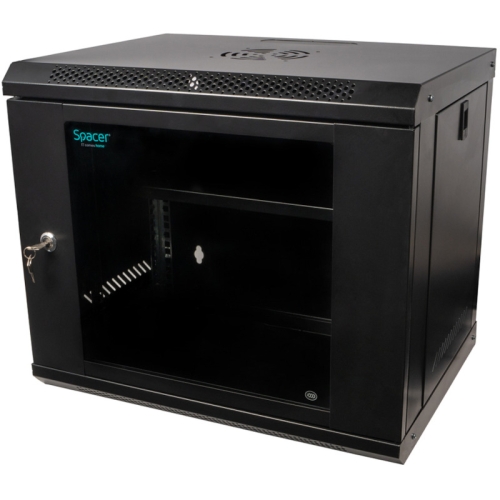 CABINET 19" SPACER 9U 500x400mm, fixare pe perete, Flatpack (dezasamblat), Grey, usa sticla cu blocare, panouri detasabile, otel 1mm, sarcina maxima 25Kg, contine un raft, "SPCW-9U-400-GR-02" SPCW-9U-400-GR-02