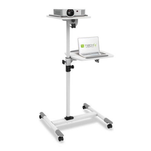 Stand multifunctional cu 2 rafturi reglabile, mobil pe roti, TECHLY, alb, ICA-TB TPM-6 "ICA-TBTPM-6" ICA-TBTPM-6
