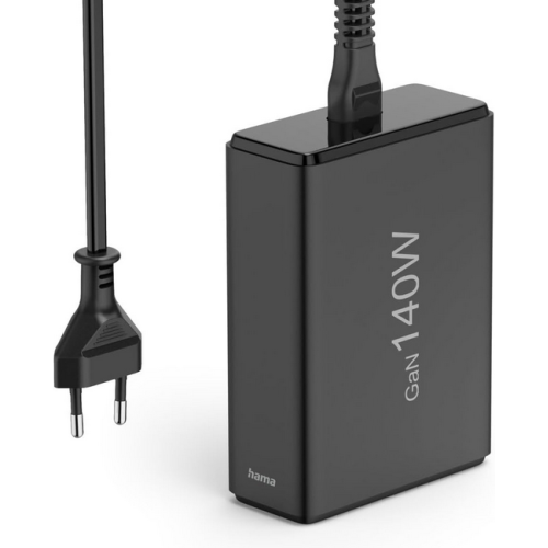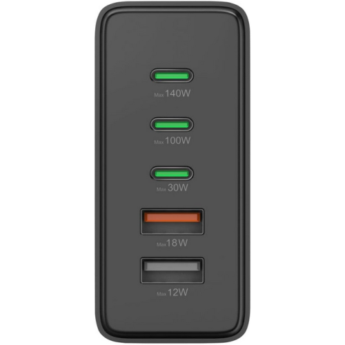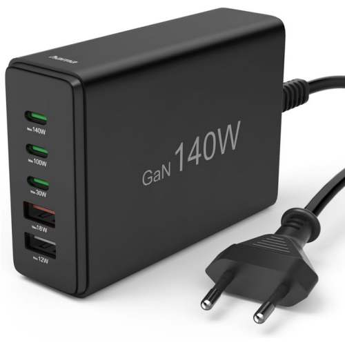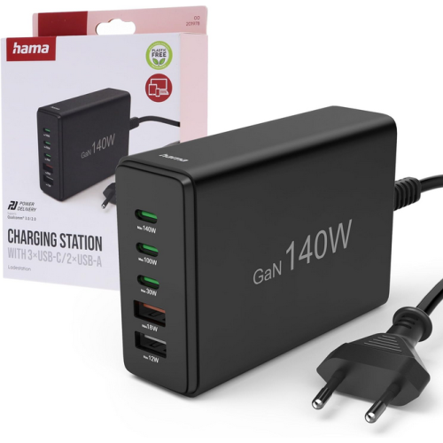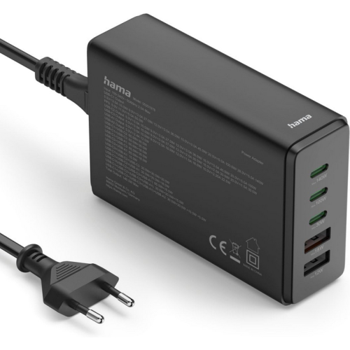 Statie de incarcare Hama GaN, 3 x USB-C, 2 x USB-A, 140 W, Black