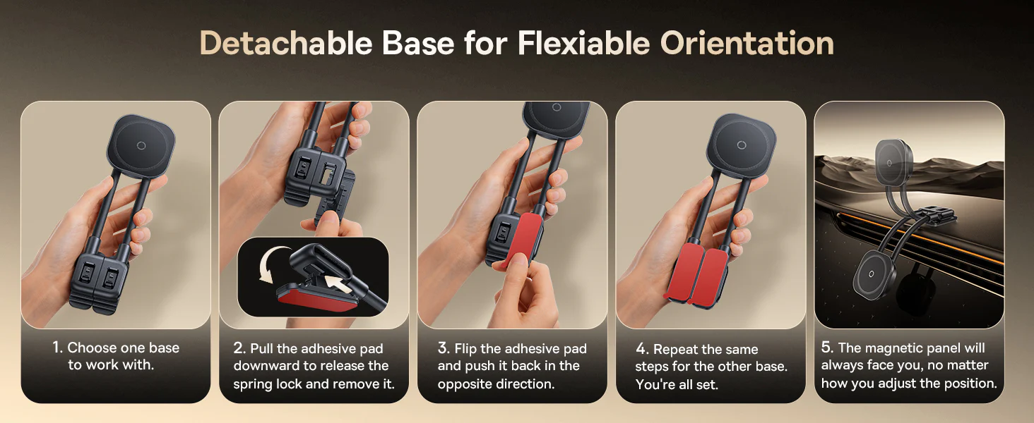 Datorita bratelor subtiri si bazei compacte, acest suport magnetic auto se potriveste aproape oriunde - borduri, parbrize, torpedouri, guri de ventilatie - orice doriti. Chiar si in locuri pe care nu le-ati fi crezut posibile. Oriunde il instalati, designul flexibil asigura pozitia ideala de vizualizare de fiecare data.