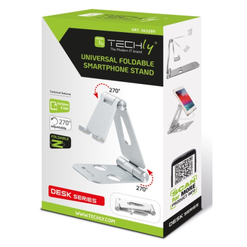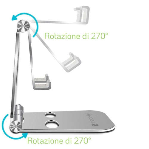 Practical and elegant aluminum pocket desk holder for smartphones and tablets suitable for any environment such as the office and home. Adjustable angle up to 270 ° allowing the stand to be fully foldable and for vertical and horizontal viewing. Sturdy non-slip rubber shims and hole for the charging cable. Ideal for smart working, study, distance learning, video conferences or for free time