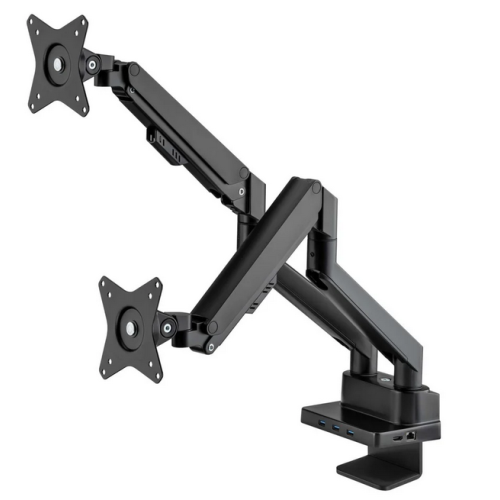 Tip AccesoriuSuport monitorSuportReglabilInstalareBirouNr. max. ecrane2Greutate maxima suportata9 kg per monitorMarime minima ecran17 inchMarime maxima ecran32 inchCompatibilitateUniversalCompatibilitate VESA75x75, 100x100Inclinare suport+45/-45°Rotire suport360°Swivel180°CuloareNegruCaracteristiciReglaj pe inaltime: 210 - 490 mm