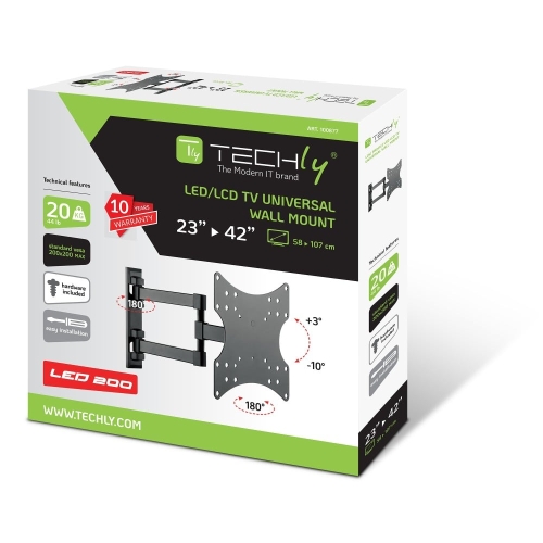 Suport TV/LCD/LED pentru perete, reglabil, Techly, 23 - 42 inch, Negru, ICA-LCD 2923E, 100877 "ICA-LCD2923E" ICA-LCD2923E