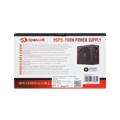 Sursa Redragon RGPS-700W 700W 80 PLUS Bronze, eficienta 85%, cabluri plate pentru un wire management mai bun, single rail (58A), ventilator silentios de 120mm (Liquid Bearing), 2x 6+2pin PCIE, 6x SATA, 2x Molex, 1x 4+4pin EPS12V(600mm), protectii OVP/OPP/SCP, Active PFC, ATX 12V v2.31, SSI EPS 12V, dimensiuni (LxWxH): 160x150x86mm, greutate: 1.47kg