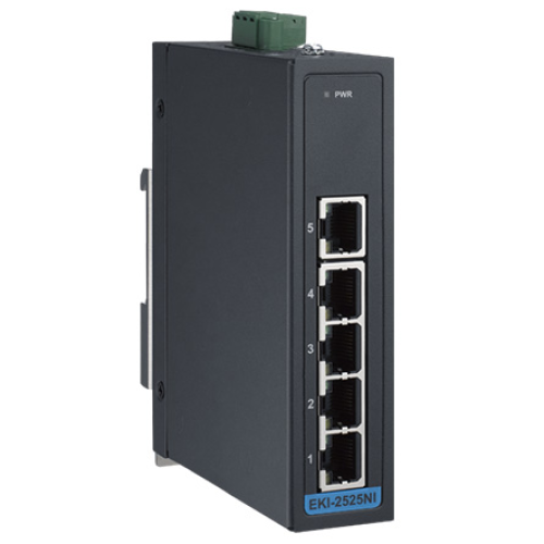 EKI-2525NI este un switch Fast Ethernet 10/100 Mbps, construit într-o carcasă metalică compactă, cu clasificare IP30, care oferă protecție împotriva prafului în medii industriale.