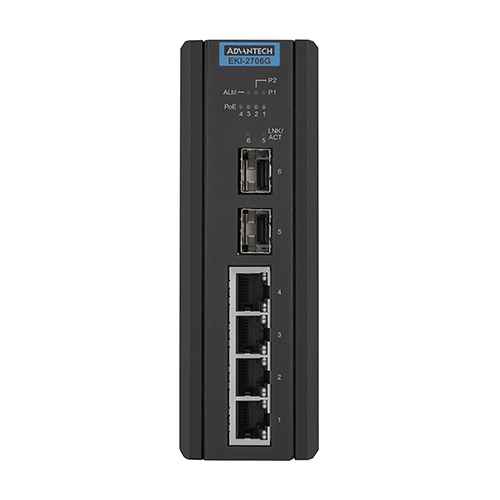 EKI-2706G PoE este un switch Ethernet neintrerupt (unmanaged) care suportă 4 porturi PoE+ (Power over Ethernet) și este conform standardelor IEEE 802.3at/af.