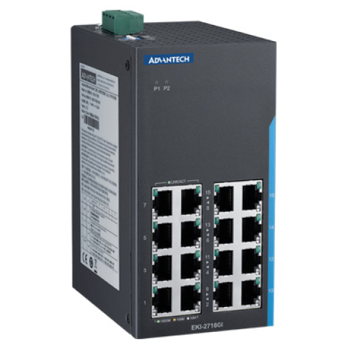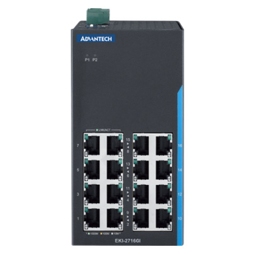 Switch-ul industrial Ethernet EKI-2716GI oferă 16 porturi de cupru 10/100/1000 Mbps, asigurând conectivitate versatilă pentru o gamă largă de aplicații.