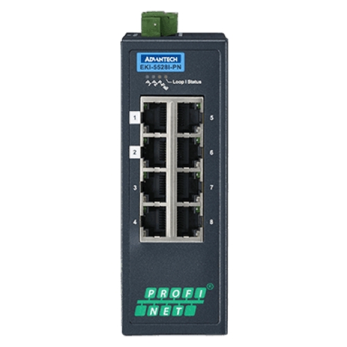EKI-5528-PN reprezintă o nouă generație de switch-uri gestionabile de nivel entry-level. Acestea suportă protocoale de redundanță media și respectă standardul PROFINET pentru comunicații în timp real. Dispozitivele au o carcasă metalică compactă, cu grad de protecție IP30, care le oferă rezistență în medii industriale cu praf. Gama largă de alimentare (8,4 – 52,8 VDC) le permite să funcționeze în zone cu alimentare instabilă și în condiții de mediu dificile.