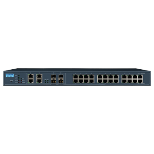 24GE PoE and 4G Combo Managed Ethernet Switch, IEEE802.3af/at, 19" Rackmount, -40~75℃, 46~57VDC